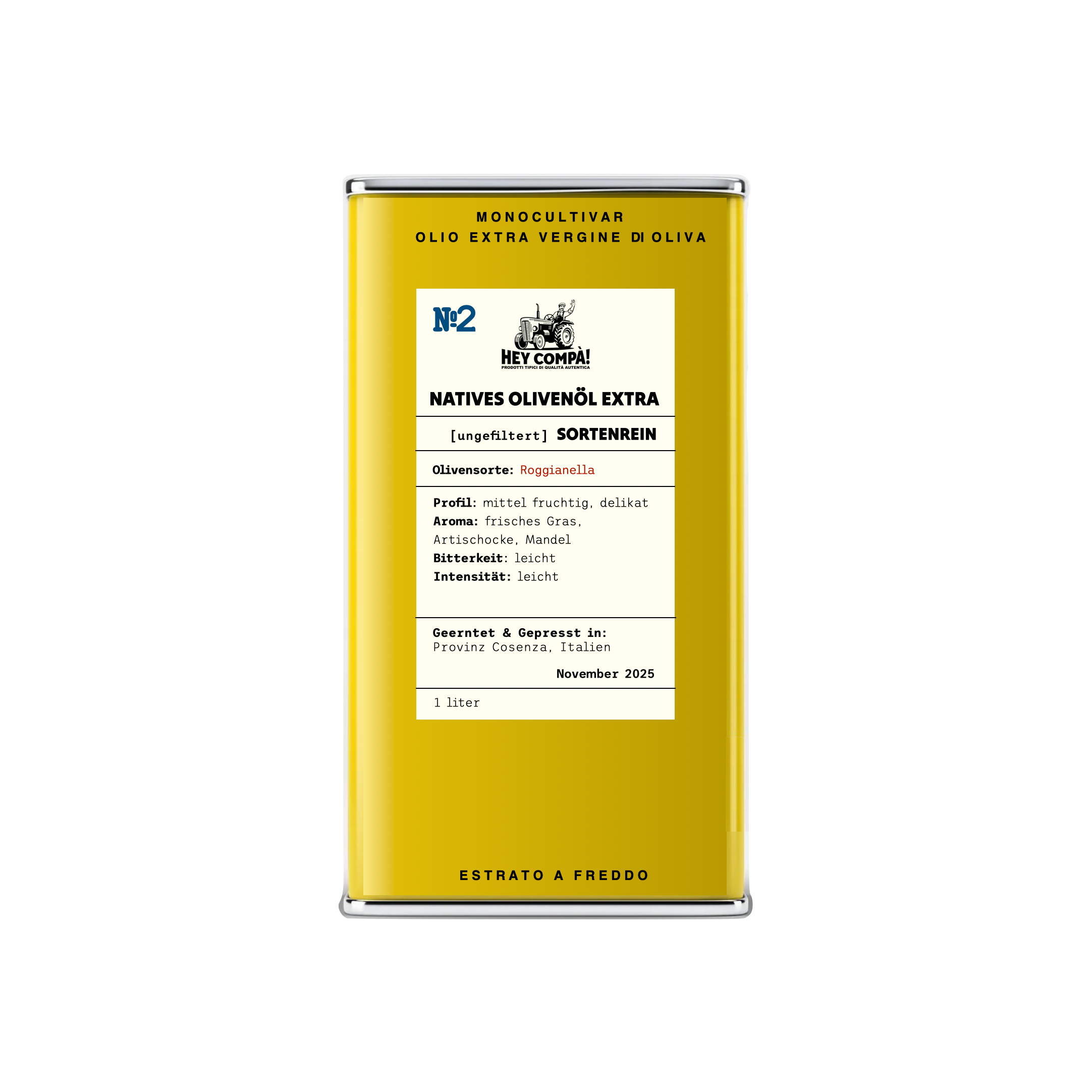 Die zarten, fruchtigen Noten der Roggianella machen sie ideal zum Verfeinern von frischen Salaten, gegrilltem Gemüse und leichten Pastagerichten – sie verleiht jedem Bissen eine subtile, aber unvergessliche Note.